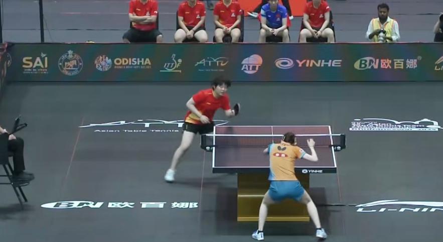 第二盤,孫穎莎11-9、11-5、11-7速勝張本美和,中國隊總比分2-0領先。