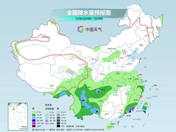 中國天氣網訊 假期臨近尾聲,我國降水主要出現在西部和華南沿海等地,今明兩天(10月5日至6日),華西地區仍有頻繁陰雨雪,四川、重慶、湖北、陝西等地需防次生災害。受颱風“小犬”影響,臺灣島今天強降雨持續,明起廣東、福建雨勢也將明顯增強。氣溫方面,今天冷空氣繼續影響北方地區,明後兩天將影響南方,多地氣溫將創今年立秋以來新低。