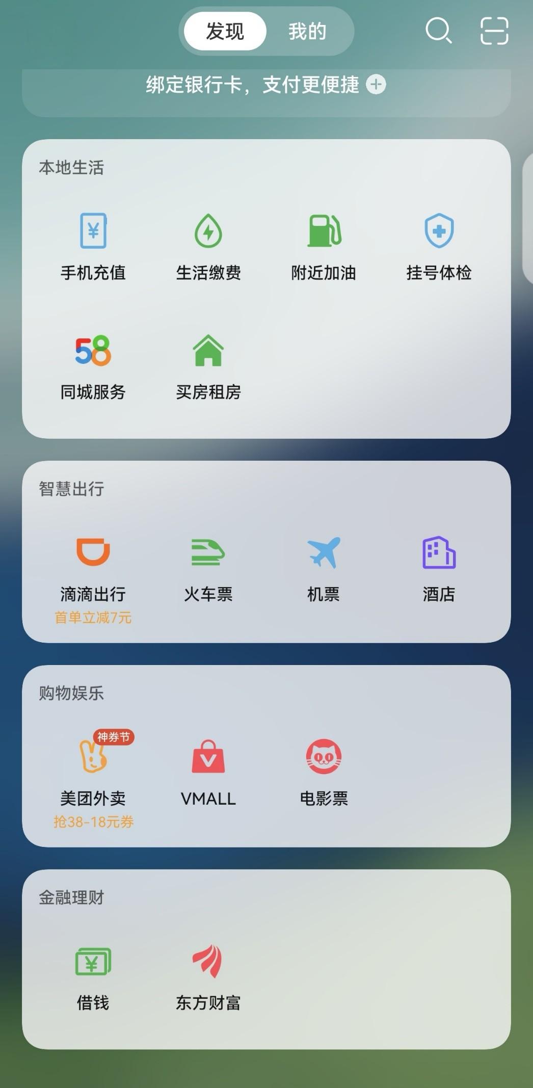 據華爲方面介紹,爲加速鴻蒙生態建設,全新升級的負一屏將會支持華爲支付。首批入駐的夥伴包括滴滴出行、美團外賣、58同城、安居客、健康160、同程機票酒店火車票、貓眼電影、東方財富等。