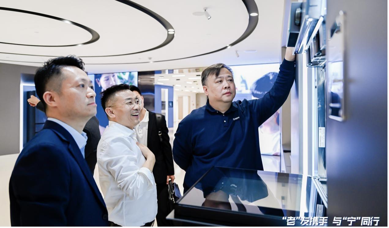 會議當天,蘇寧易購集團總裁任峻一行在老闆電器總裁任富佳的陪同下走進位於杭州的老闆電器總部,共同參觀了老闆電器全球烹飪藝術中心,雙方就智能煙竈、洗碗機、集成竈等數字廚電產品及前沿技術進行探討和交流。