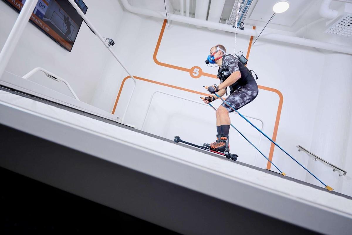以歐洲備受歡迎的滑雪運動爲例,芬蘭當地擁有滑雪運動相關的完整產業鏈和研究經驗豐厚的高校資源,因此華爲穿戴就地取“材”,深入在芬蘭開展滑雪運動方向的研究及生態合作。爲此,華爲也專門在芬蘭運動健康科學實驗室建立了一個滑雪模擬測試場地,搭建出支持調節高度和速度的滑雪斜坡,能夠模仿雪地的摩擦力,在實驗室內完成滑雪運動的研究和數據收集。