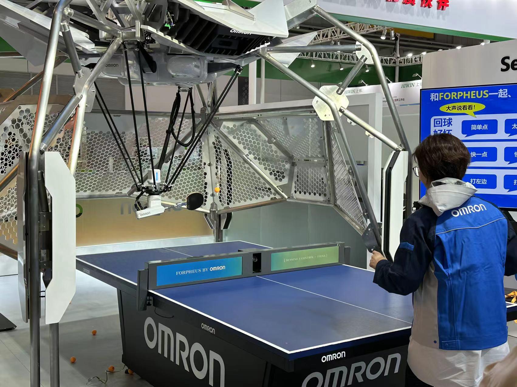 來自歐姆龍展臺的明星展品FORPHEUS乒乓球教練機器人雖是“老面孔”卻有了“新面貌”!據悉,這是歐姆龍第八代乒乓球教練機器人,藉助雙向語音溝通,能與人類溝通訓練想法,智能規劃對打方案,像專業乒乓球運動員一樣,進行高水平的發揮。