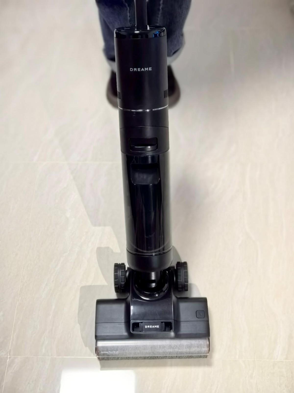 這時候就是洗地機大顯身手的時候了。應對以灰塵爲主的場景下,追覓洗地機 H30 的優勢非常明顯,推着洗地機一遍而過,地面上立馬就可以看到乾淨了起來,隨着拖地工作的進行,前面拖過微小的水痕就逐漸乾燥了。