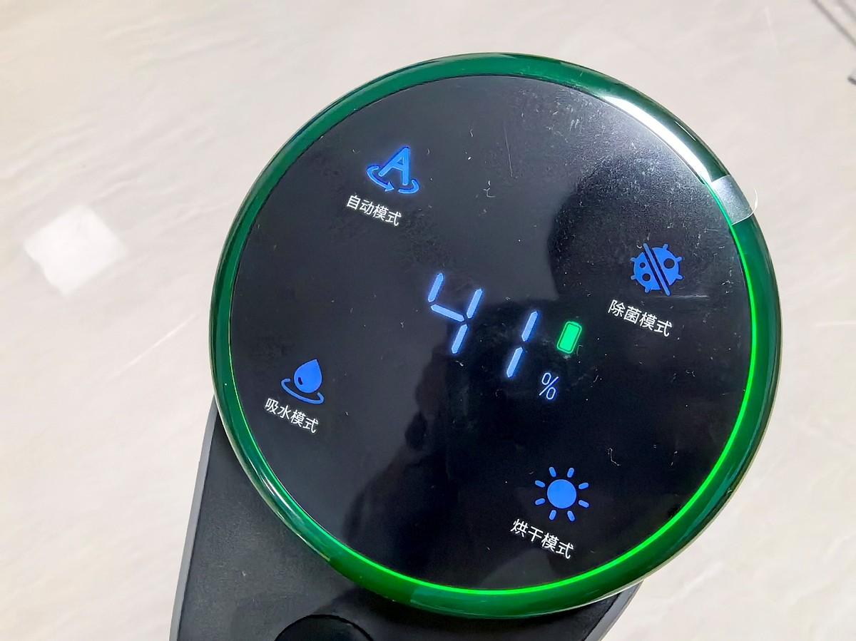 開機之後,主機頂部屏幕亮起,會顯示自動、除菌、吸水、自清潔的四種狀態,開機默認爲自動模式,同時伴有語音提醒,讓用戶直觀瞭解當前模式,也可以通過模式切換按鍵,進行便捷切換。