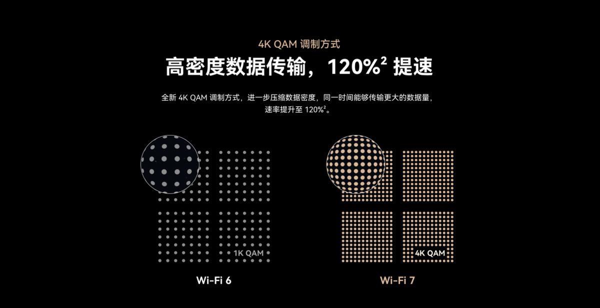 第三大優勢就是更高的速率。華爲路由 BE3 Pro支持4K QAM數據壓縮技術,使速率提升至120%。爲了提升傳輸效率,數據往往會經過壓縮。4K QAM可承載12 bits,這就好比原本每輛車只能運送10箱貨物,而使用了全新的4K QAM壓縮技術同一時間能夠運送12箱貨物。這意味着用戶不論是下載電影還是看視頻,都能獲得更快的加載速率。