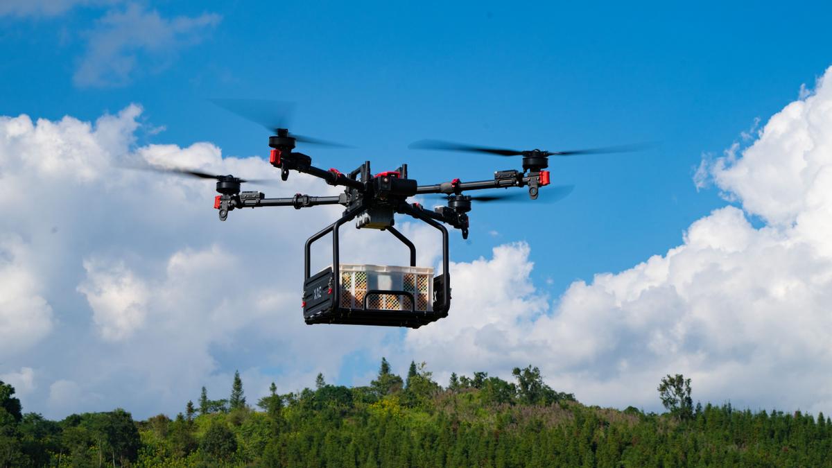 在過往農業無人飛機常規功能的基礎上,今年P150還推出了專爲田間運輸所設計的極飛睿運系統,幫助農場管理者突破地形和距離限制,減輕人工負擔,並降低運輸成本。極飛睿運系統具備吊運和艙運兩種方式,有效載重65公斤,可滿足農資搬運、秧盤搬運、苗木吊運等需求。