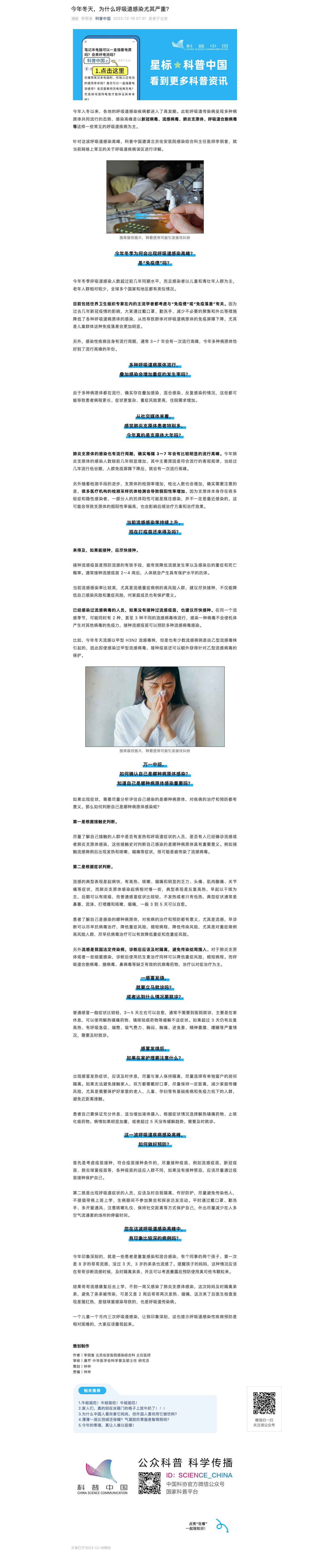 針對這波呼吸道感染高峯,科普中國邀請北京佑安醫院感染綜合科主任醫師李侗曾,就當前網絡上常見的關於呼吸道疾病誤區進行詳解。