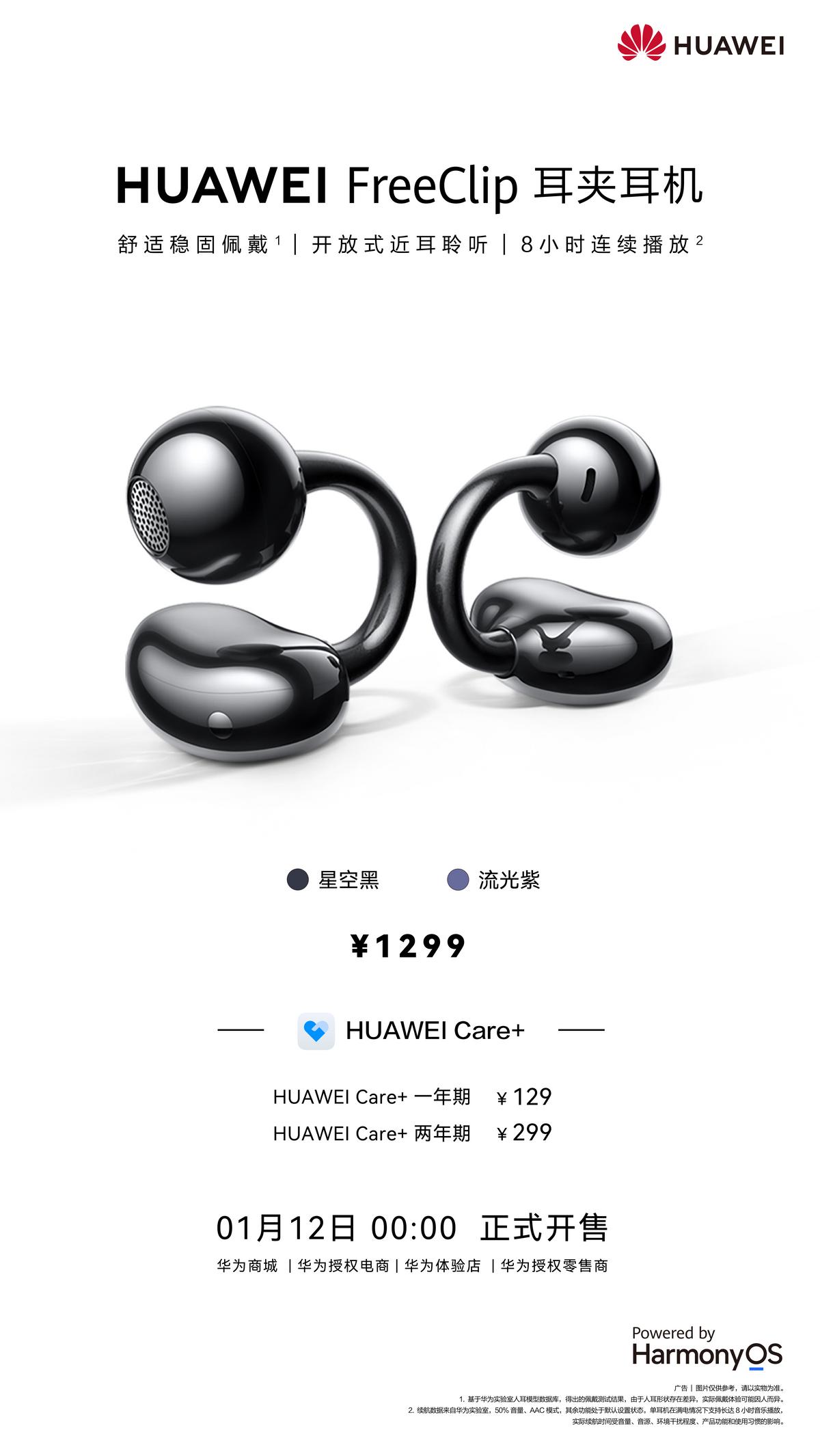 1月12日,華爲於全渠道開啓華爲FreeClip耳夾耳機首銷,售價爲1299元,用戶可登錄華爲商城及各大授權電商平臺或前往華爲體驗店、華爲授權零售門店進行購買。華爲FreeClip耳夾耳機不僅是先鋒美學天花板,更是舒適聆聽新標杆,帶來全新的音樂體驗,助力用戶自「戴」高光,「聲」來C位,創造更多的高光時刻。