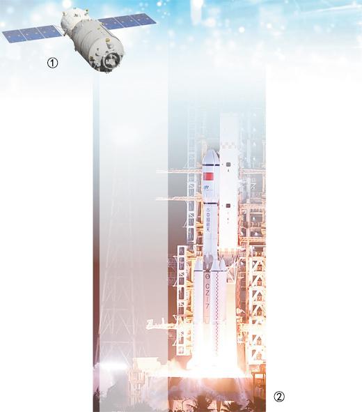 圖①:天舟七號模擬圖。