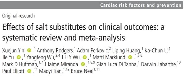 結果表明,用鉀鹽代替食用鹽,能有效降低高血壓風險。此外,心臟病、中風、全因死亡風險皆降低了11%;相關心血管病風險則降低了13%。