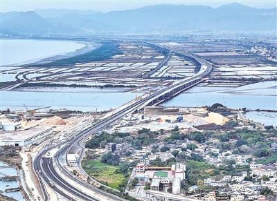 1月21日,中鐵四局承建的深汕西高速改擴建項目長沙灣跨海特大橋左幅主跨合龍。作爲瀋海國家高速公路汕尾陸豐至深圳龍崗段的深汕西高速改擴建項目全長約146公里。新華社記者 劉大偉 攝