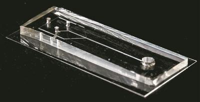 蜘蛛的絲腺就像是一種天然的微流控裝置。研究人員試圖用微流控來模擬天然蜘蛛絲的產生,開發出一種外觀像矩形盒子的設備,裏面有微小的溝槽。他們先將前體蛛絲蛋白溶液放置在一端,然後通過負壓將其拉向另一端。當蛛絲蛋白溶液經過微流控通道時,它們暴露在化學和物理環境的精確變化中。在正確的條件下,蛋白質自組裝成絲纖維,且具備特有的複雜結構。