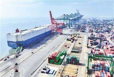 近年來,福建港口不斷提升港口設施和服務,福州港和廈門港成爲汽車滾裝出口的重要通道。據統計,2023年福建省汽車出口8.9萬輛,海外市場覆蓋151個國家和地區。圖爲遠洋滾裝船在福州港江陰港區裝運出口海外的乘用車輛。