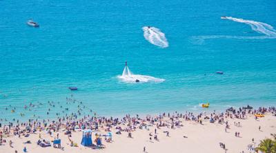 海南三亞,大東海海濱景區遊人如織。葉龍斌攝(影像中國)