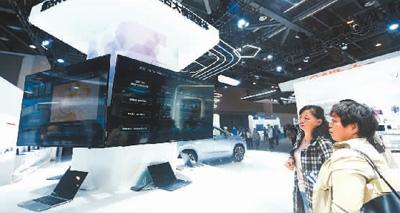 2023年11月23日,浙江省杭州市,觀衆在2023第二屆全球數字貿易博覽會上了解華爲研發的盤古大模型的應用。