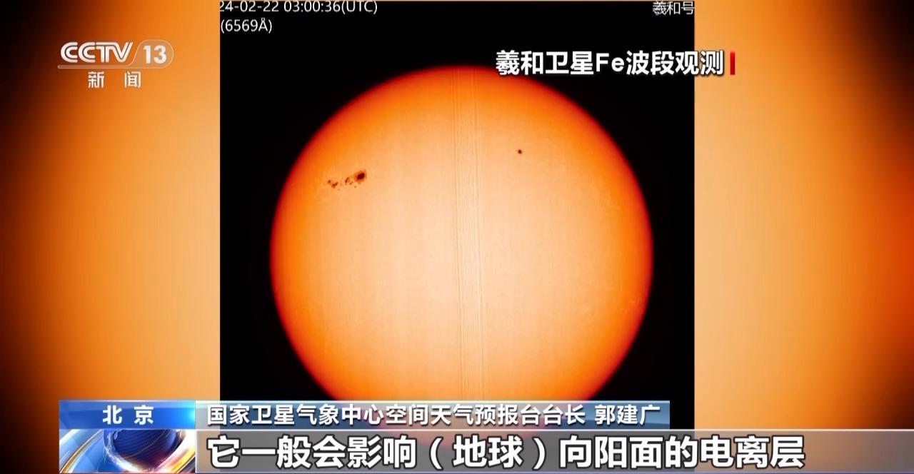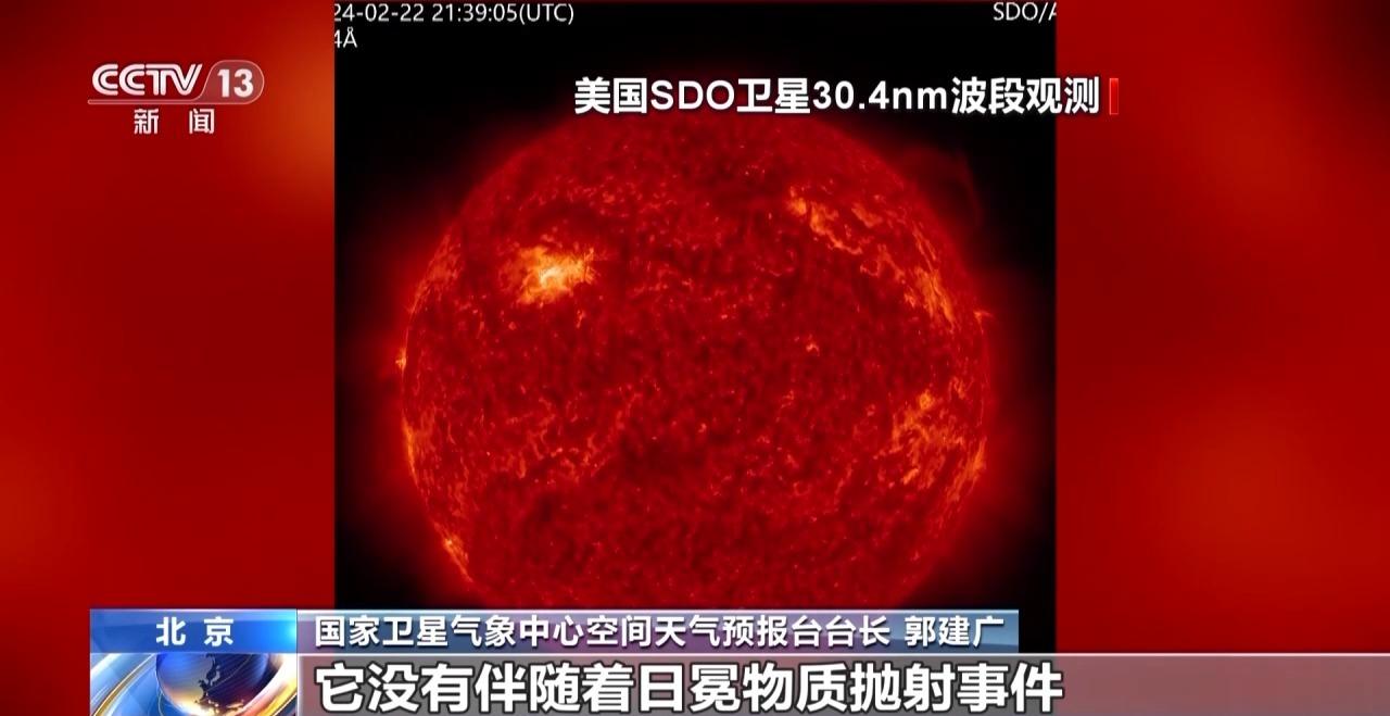 國家衛星氣象中心空間天氣預報臺臺長 郭建廣:太陽耀斑我們一般是指(太陽)大氣層中突然增亮的現象,一般它也伴隨着大量的能量釋放,這個能量大概相當於幾千億顆氫彈同時爆炸的能量。