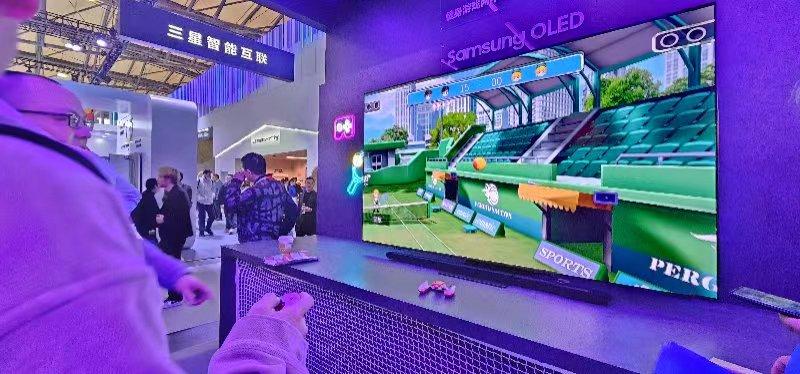 在遊戲區域,三星電視同樣展示了其多樣化的家庭遊戲娛樂方式。通過手機、PC、雲遊戲、體感等多種遊戲場景,三星電視爲現場玩家們帶來了酣暢淋漓的遊戲體驗。其中,三星OLED電視S95D以其卓越的性能成爲了現場明星產品。搭載動態加速技術的S95D支持高達4K 144Hz的刷新率,爲玩家們提供了流暢而細膩的遊戲畫面。