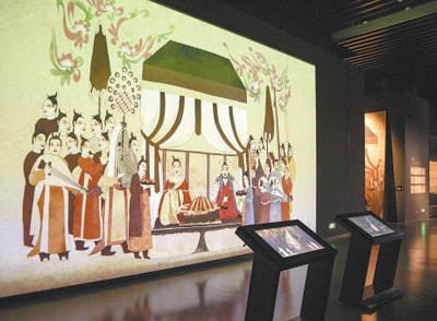 遺址廳是博物館重頭戲。透過玻璃,墓道、過洞、甬道清晰可見。站在墓葬封土堆旁,戴上4K分辨率的VR眼鏡,控制手柄前進,只見威武的儀仗分列兩邊,樂伎奏響激昂胡樂,徐顯秀夫婦身着華服舉杯宴飲,氣氛熱烈。置身其間,北齊生活彷彿可觸可感。