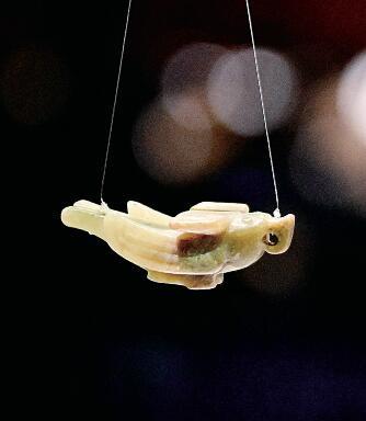 河南安陽殷墟博物館新館內展出的玉鳥。新華社發