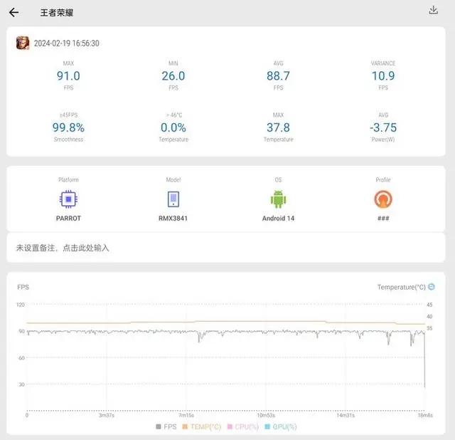 在王者榮耀的遊戲體驗上,90幀的高清畫質,真我12 Pro+的平均幀數爲89幀左右,在中端機型中算是不錯的表現。