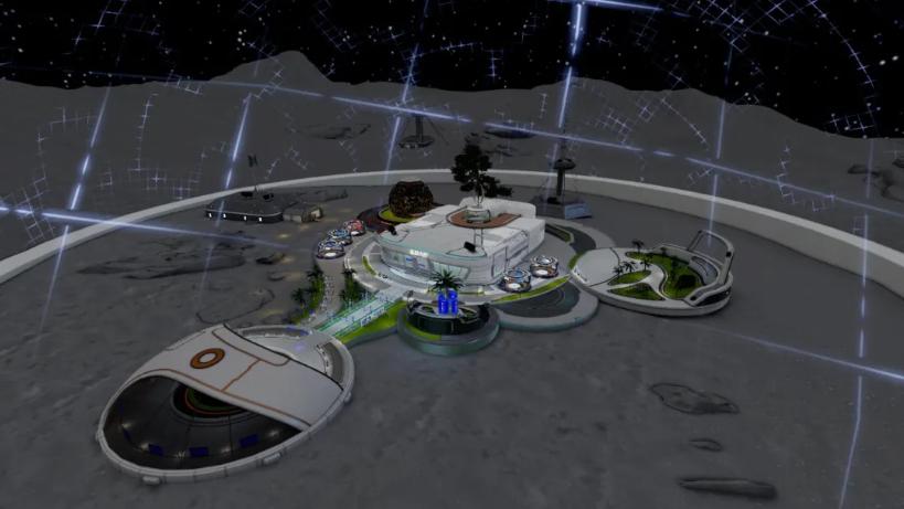 剛一進入中關村論壇元宇宙會場,首先映入眼簾是科幻壯觀的“外太空基地”全景。