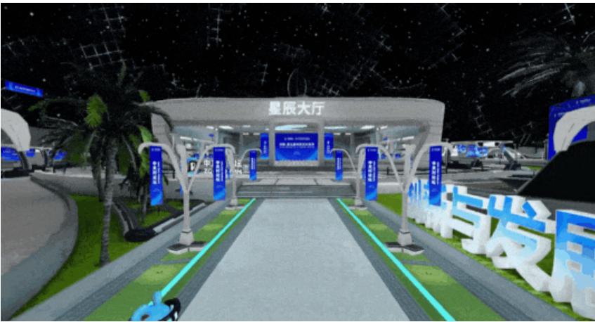 元宇宙會場“星辰大廳”與圍繞其四周的太空站、衛星裝置等“高科技裝備羣”共同營造出了極具科技與未來感的氛圍。緊握“創新與發展”的永久主題,全新升級的元宇宙會場更具交互性和實用性,功能體驗十分完善,將人類對宇宙無盡探索精神與“創新:建設更加美好的世界”主題生動呈現。