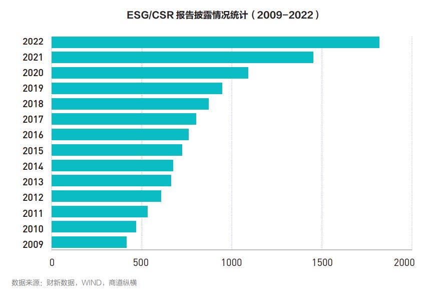 根據《2023中國ESG發展白皮書》統計,披露ESG信息的A股上市公司數量逐年增多,2023年已超過1800家。其中金融行業上市公司ESG披露覆蓋率超過90%,央企上市公司接近90%。