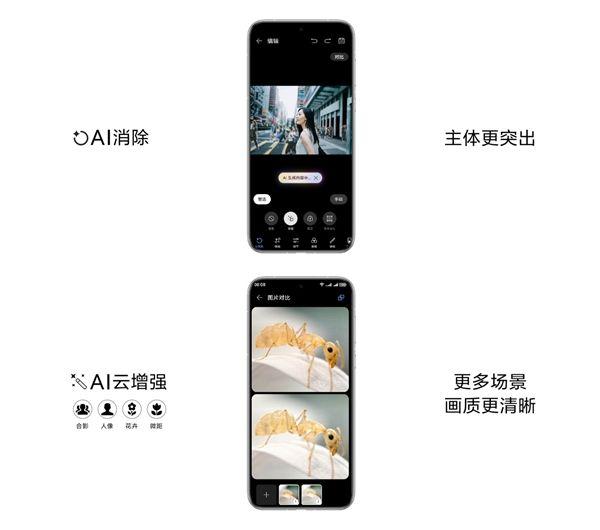 在智能化方面,基於AI大模型技術,HarmonyOS 4.2爲華爲Pura 70系列帶來了AI消除和AI雲增強功能,能夠自動優化照片質量,消除不必要的背景元素,並通過雲端處理增強圖像細節。此外,全新的智慧助手小藝也得到了升級,具備更強的自然語言理解能力和方言識別功能,還能提供美妝顧問和文檔處理等多種實用功能。