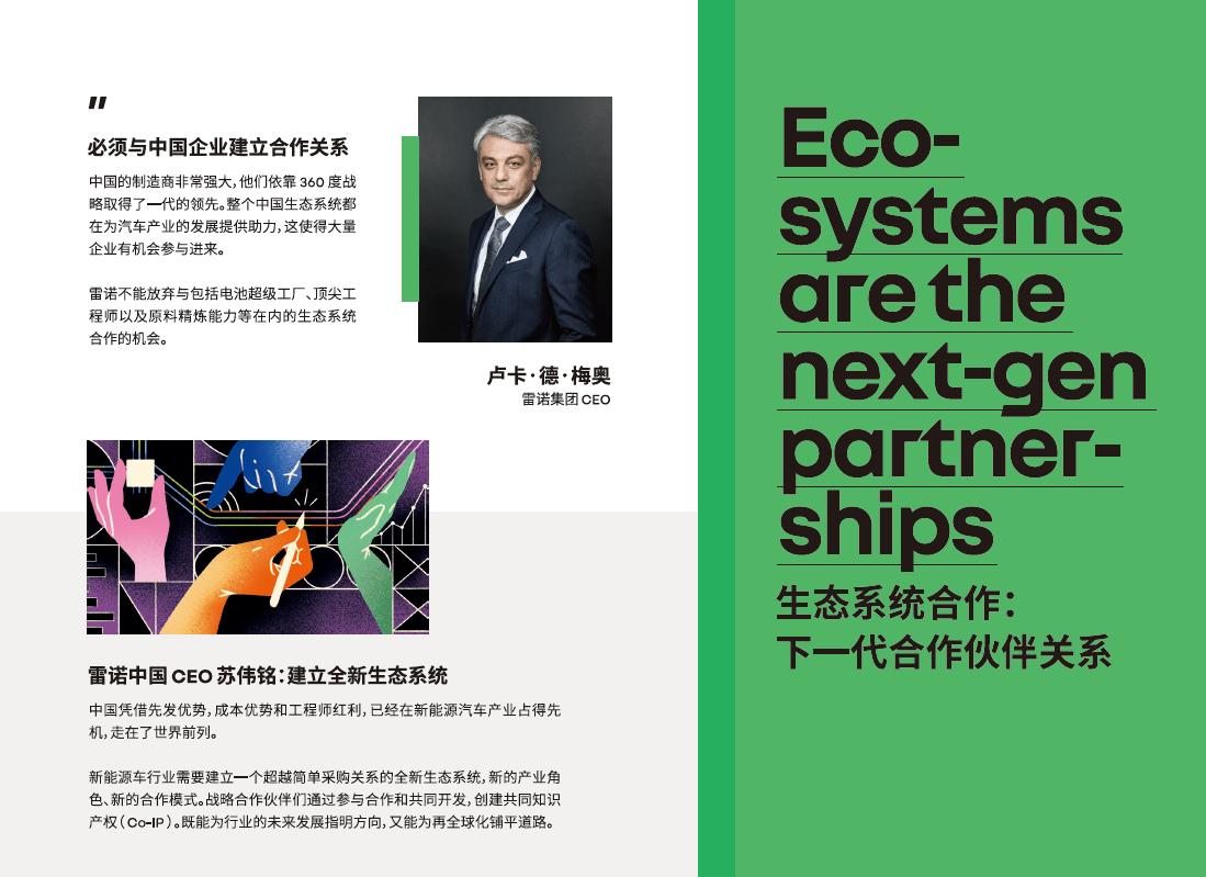在全球化、智能化的時代背景下,單打獨鬥已不再是最佳選擇。雷諾集團深刻認識到這一點,因此在早在2021年,雷諾集團就提出了“邁向下一代汽車公司”的遠景目標,並且明確提出了“生態系統合作戰略(Eco-system partners)”。這一戰略旨在通過與全球範圍內的優秀合作伙伴建立緊密合作關係,共同推動汽車產業的技術創新和市場拓展。