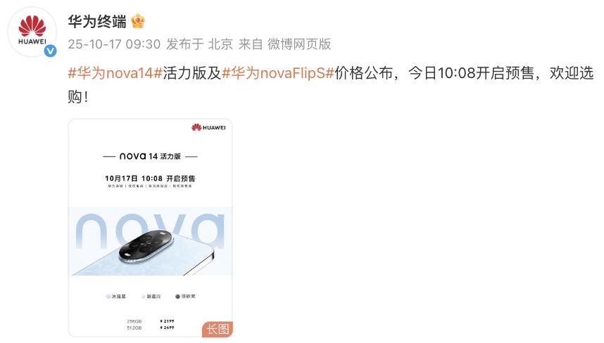 10月17日,華爲終端官方微博陸續釋放了nova 14 活力版的價格與產品海報,同時以一場輕鬆有趣的華爲nova系列新品玩機秀,正式揭開了這款新機的神祕面紗。當前nova 14 活力版也已開啓預售,售價2199元起。新機在設計、影像和系統體驗等方面實現全面升級,堪稱2000元價位段最值得入手的5G手機。